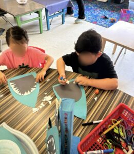 1番やりがいを感じた仕事は、6歳クラスをもったとき、海の生物の学習の一環で、サメのお面を作るというプロジェクトを任されたときです。前日に担任の先生と一緒にサメの特徴の説明、お面の作り方、必要な材料を話し合いました。当日は子供たちをまとめながら工作の説明からサポートをし、2週間で1番大変であったけれど楽しめた日でした。お面を気に入って、頭に付けたまま外遊びをしている子もいて癒されました。